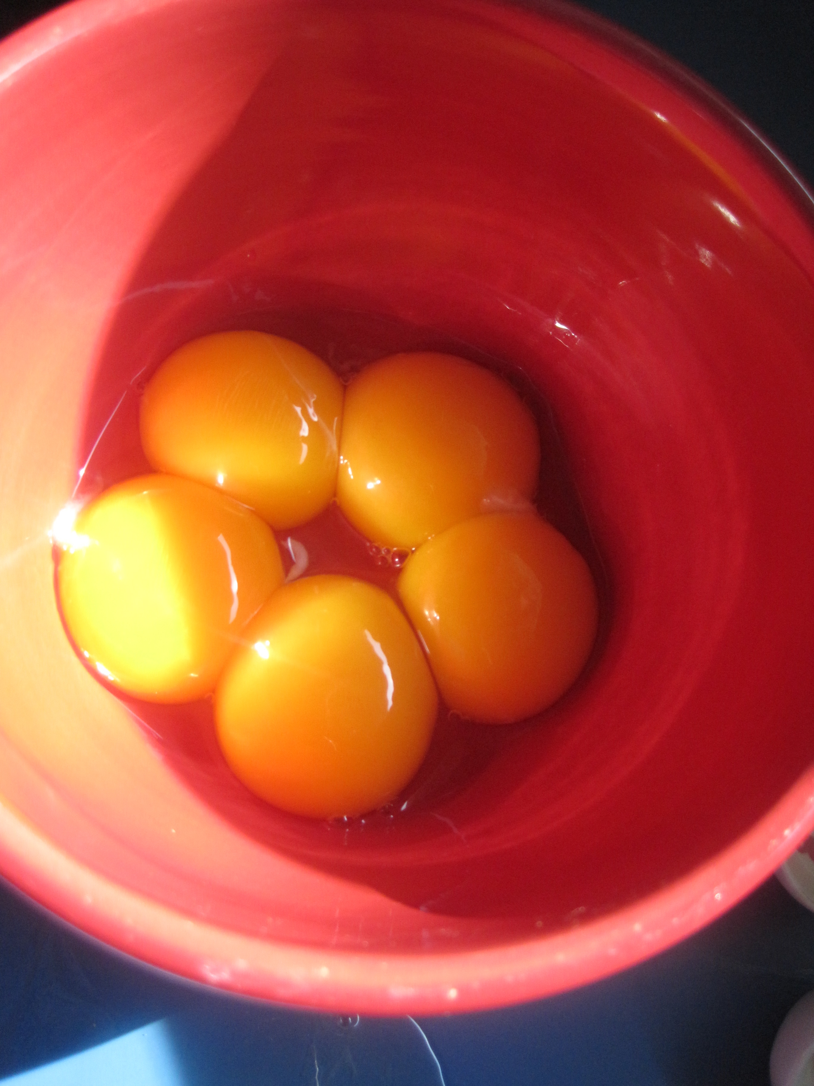 In a large bowl, cream together butter, oil, and sugar until light and fluffy. Mix in the egg yolks, vanilla, and coconut.