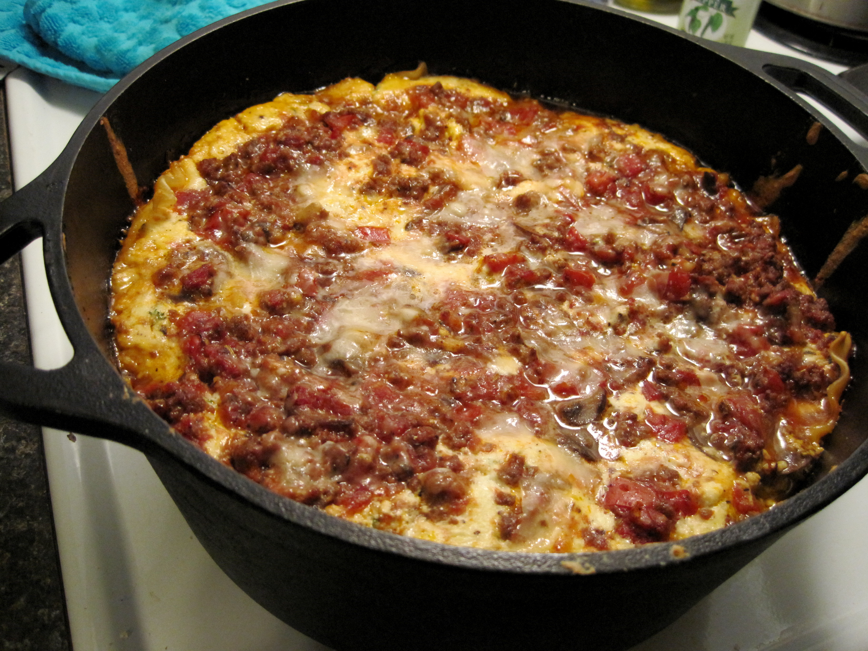 Note: If you want to make this a meat sauce, cook the tomato sauce as directed above. While it simmers, cook a pound of ground meat in a skillet. Drain the fat from the skillet. Add the cooked ground meat to the sauce after you blend it.